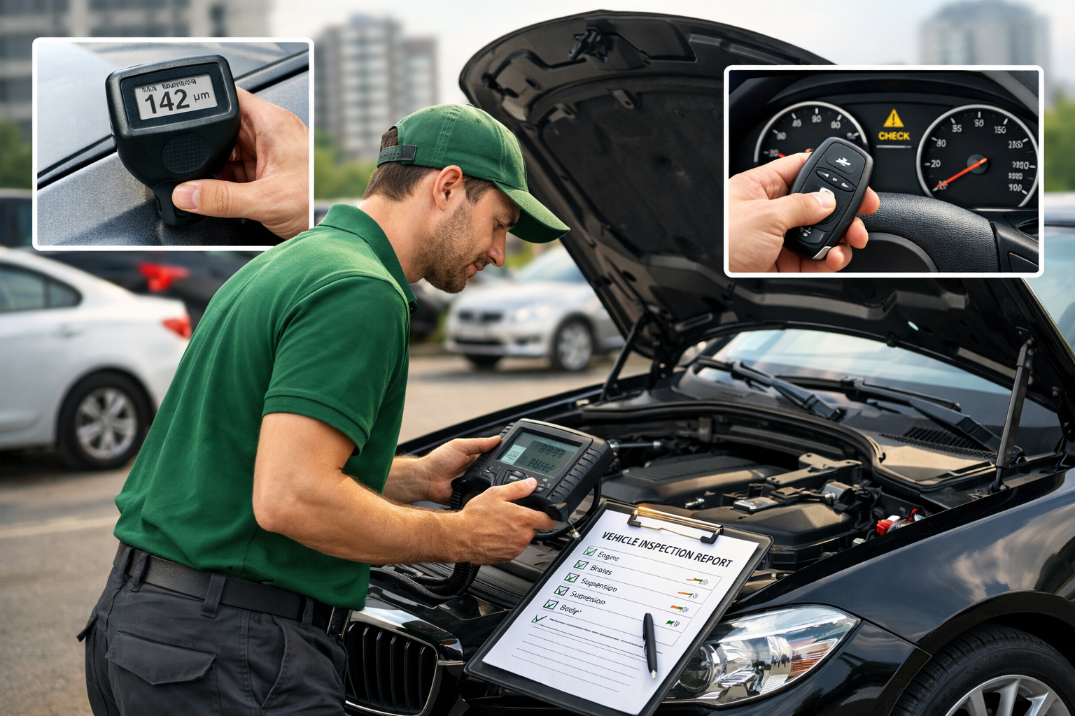 Използваме професионални дебеломери за боя и диагностични уреди. Откриваме пребоядисвани детайли, активни грешки и следи от тежки ремонти.